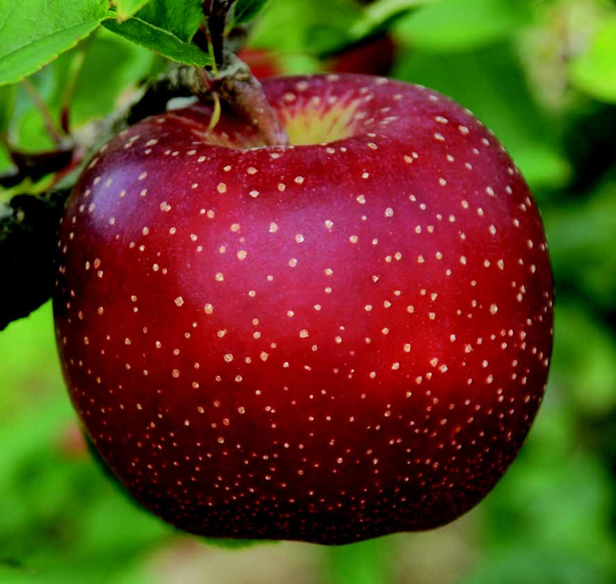 | 特性 | 果重は300〜350g位で果形は円形、果皮は濃紅色で縞はなく果点が目立つ。硬度18ポンドと硬く、糖度は15%、酸度0.3%で甘みが強く香り高い。切っても果肉が変色しないという特性を持ち、新たな需要に期待されている。 Size : / Taste : |