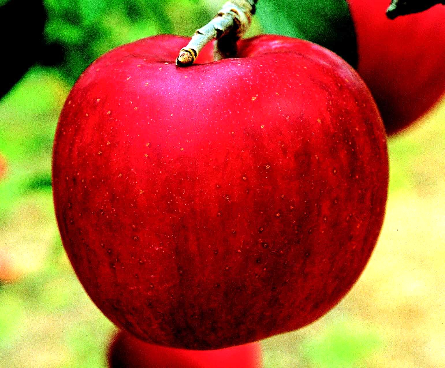 | 特性 | 果重は300〜350g位。果形は円〜長円形である。果皮は着色前より縞が鮮明に入り、濃赤色に黒い底縞が入る。作業面も容易で、軽い葉摘みをするだけで全面に着色する。果肉は黄白色で実が硬く日持ち性がよい。 Size : 300g - 350g / Taste : sweet, juicy, crispy |