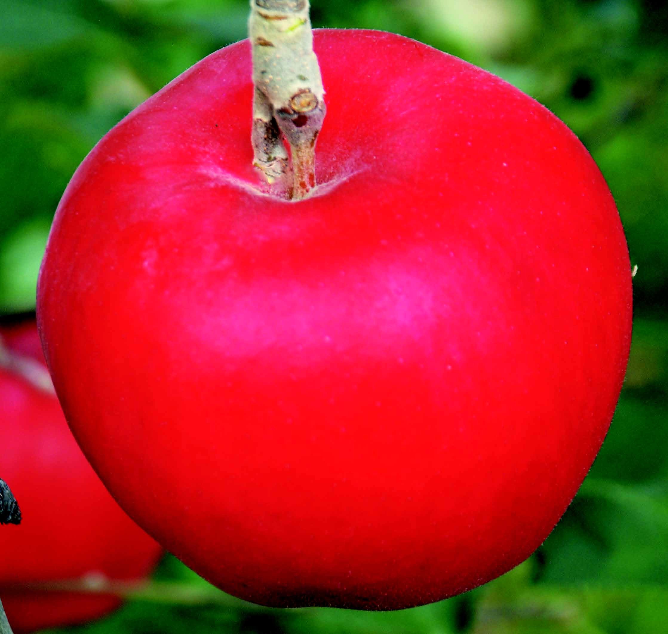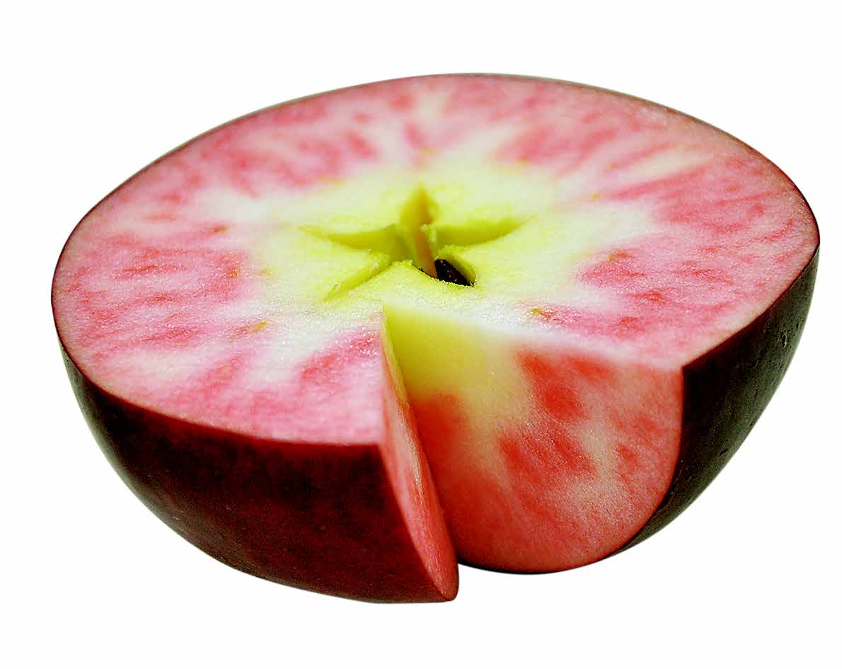 | 特性 | 果重は350g位で果形は円〜楕円形。果皮は暗赤色で縞なく着色容易。果肉が淡紅色になることが最大の特徴。糖度は13%位、酸度0.9%と甘酸っぱい食味。赤い肉質をいかした生食、加工ともに需要が見込まれる。貯蔵性は普通冷蔵で3ヶ月程度。 Size : / Taste : |