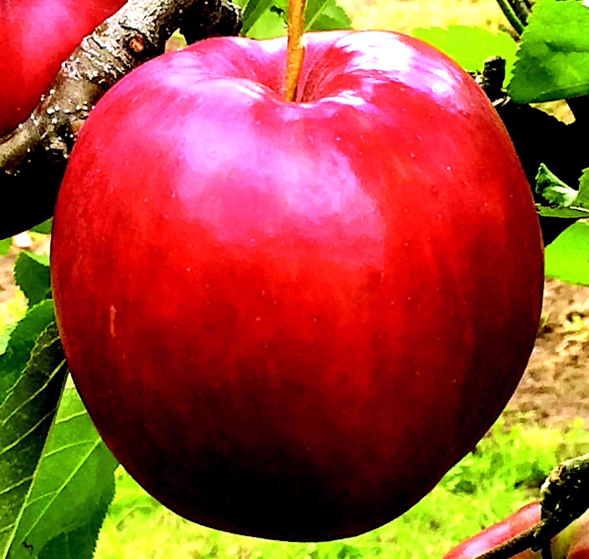 | 特性 | 果重は300~350g位で、果形は円錐形で玉揃いが良い。果皮は鮮紅色で縞が不明瞭。糖度は13~14%位と果汁が多く甘酸適和で濃厚な食味。貯蔵性は普通冷蔵で1ヶ月程度、暖地での気象条件でもよく着色し熟期の揃いがよい。 Size : / Taste : |