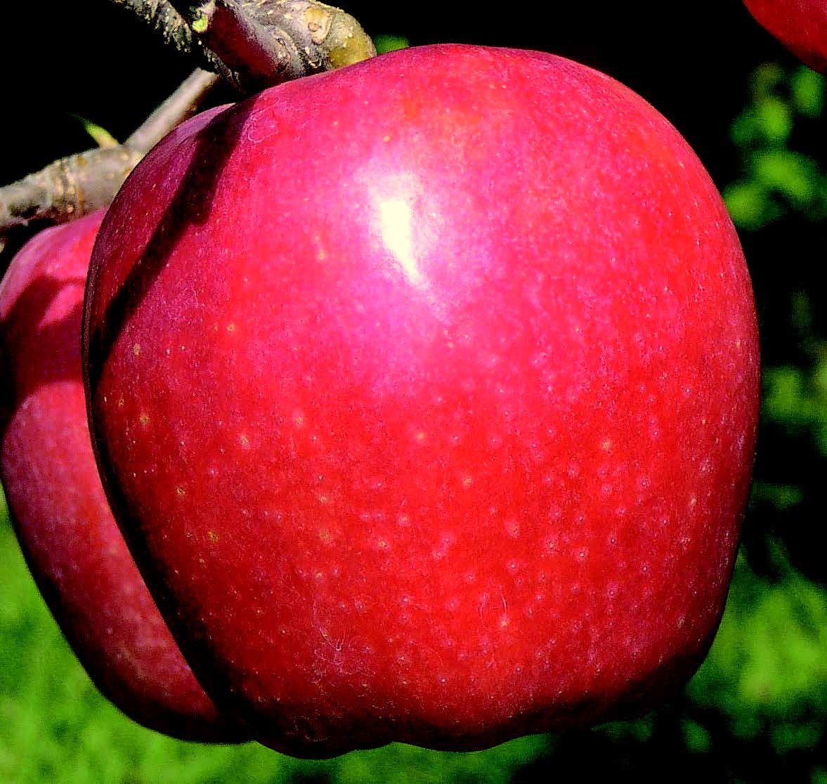 | 特性 | 果重は300~400g位、果皮は濃赤茶、縞は不明瞭で着色は良くサビの発生はほとんどない。果汁は中~多い、果肉はやや粗く、甘酸適和で渋みは少なく香りは良好。「つがる」より着色、外観や貯蔵性に優れている。 Size : / Taste : |